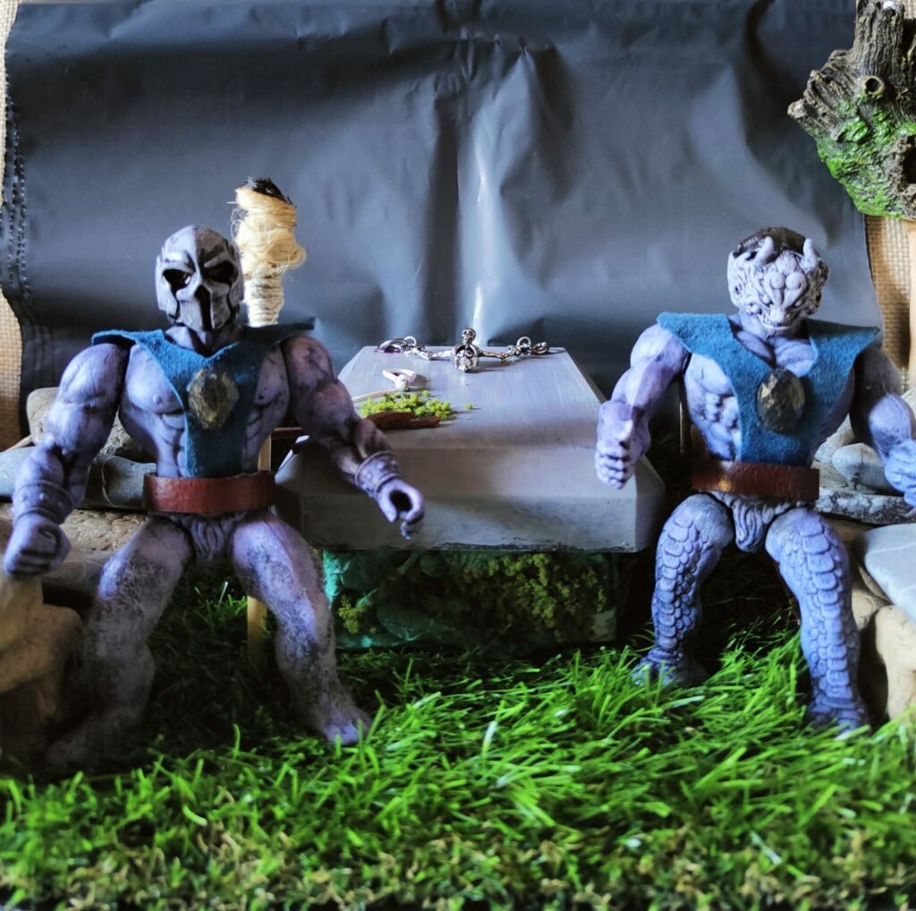 Questi due uomini pietra, statue guardiane che si attivano soltanto quando il suolo sacro, del luogo che sorvegliano, viene violato e sono Argda, a sinistra e Ralso, a destra della tomba di King Ranthec, antico Re di questo universo, scomparso nell’ultima grande battaglia.
