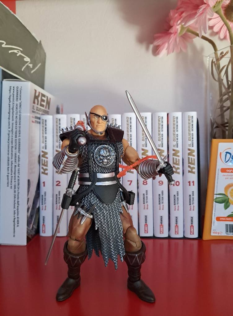 Non abbiamo teste alternative e gli accessori sono le spade gemelle e una frusta di energia rossa. Sulle spade niente di speciale da segnalare. La frusta invece arriva già arrotolata nella scatola e potrebbe essere un modo figo di esporla, tipo legata al fianco stile Indiana Jones. Tuttavia dato il particolare materiale con cui è realizzata (plastica flessibile) ho paura che a lungo andare possa danneggiarsi a tenerla in quel modo e allora ho preferito riportarla alla sua forma originaria con l’acqua bollente e lasciarla così.
