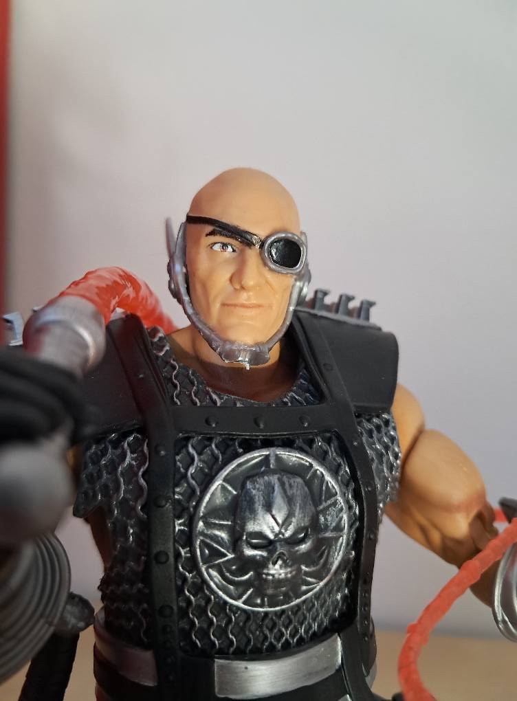 La testa è quella dell’attore che interpretava il personaggio e sembra abbastanza fedele. Attore che poi non era davvero un attore, ma il maestro d’armi della troupe, a cui poi è stata data anche una parte. E un po’ si vede: diciamo che non ha esattamente la faccia da attore d’azione e l’espressione col solito sorriso mezzo abbozzato datogli nella figure non aiuta.