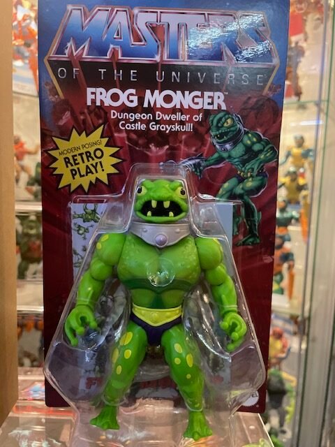 | Frog Monger : Introdotto per la prima volta sulla decalcomania originale di Castle Grayskull “Dwell of Souls Dungeon”, la famosa Grata/Prigione sotterranea da cui spuntano varieta’ di mani,tentacoli, braccia e occhi mostruosi che da sempre ha affascinato milioni di Motu Fans. Basandosi sull’illustrazione di Alex Gimenez e’ stato possibile creare un inedito personaggio articolato, una Rana Umanoide dotata di fucile e Jetpack; nel Minicomic allegato viene spiegata la sua Tragica origine !! Aspettiamo che la Mattel realizzi anche tutti gli altri mostri naturalmente.. |