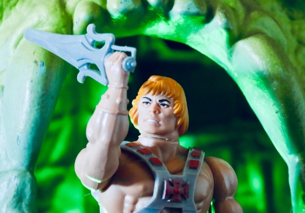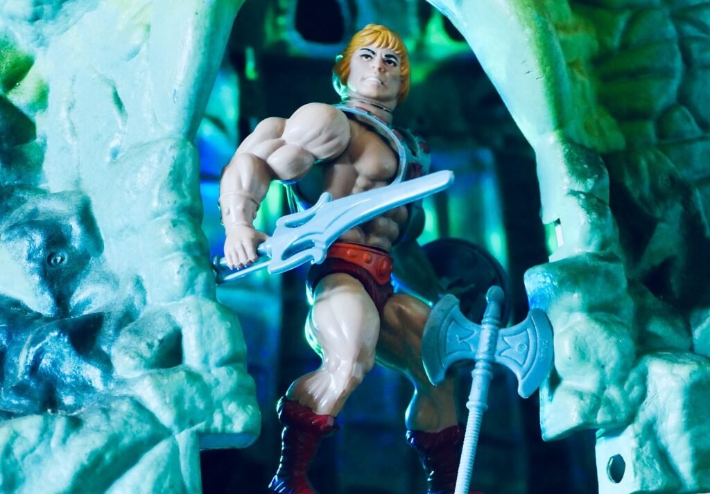 He-Man è il protagonista dei *Masters of the Universe* e il più potente difensore del pianeta Eternia. La sua identità segreta è quella di Prince Adam, un giovane principe che, grazie alla Spada del Potere e alle parole “Per il potere di Grayskull… io ho il potere!”, si trasforma in He-Man, un guerriero incredibilmente forte e coraggioso. He-Man combatte contro le forze del male, principalmente Skeletor, per proteggere Eternia e il misterioso Castello di Grayskull. È caratterizzato da un forte senso di giustizia, lealtà e coraggio, oltre che da una forza sovrumana.