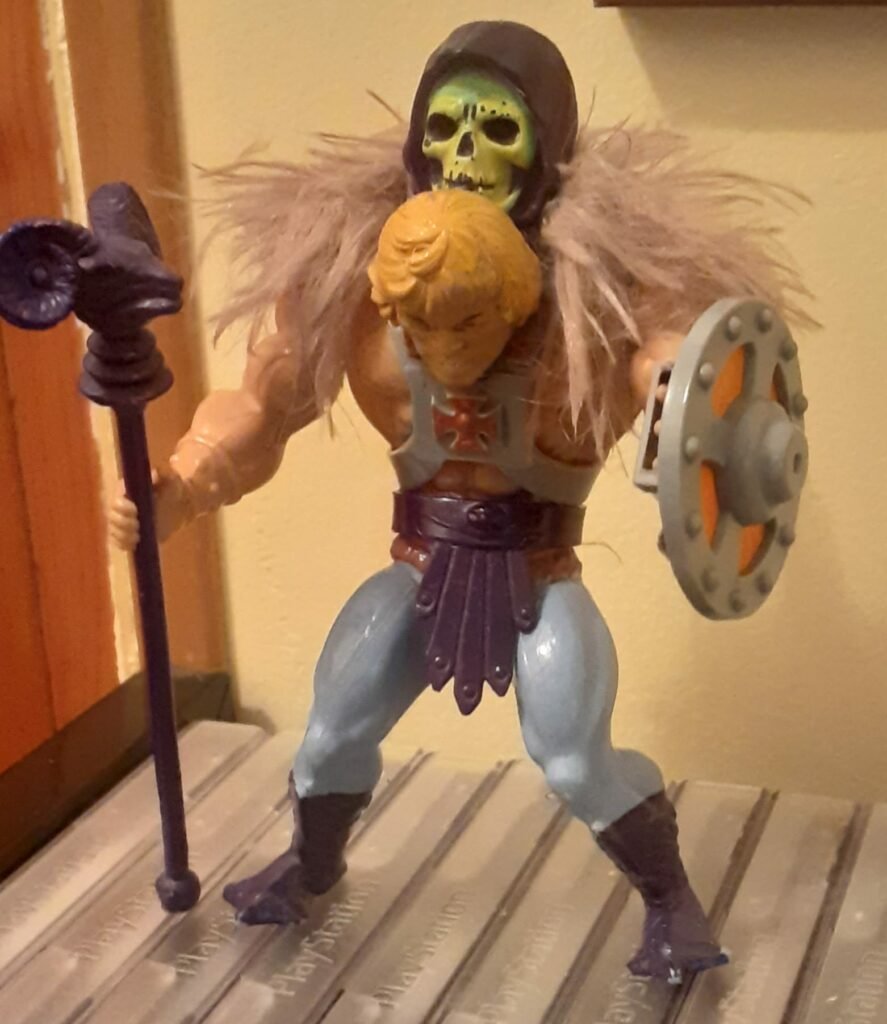 Dall’inquietante mondo di Mix-Eternia , He-Skeletor body Fusion , il peso della taste di He-man che esce dal petto e sostenuto dal bastone di Skeletor, il passo e comunque claudicante e tende a muoversi il meno possibile restando seduto la maggior parte del tempo sul suo trono dentro la montagna del serpente ,MY personal Masterverse:_)