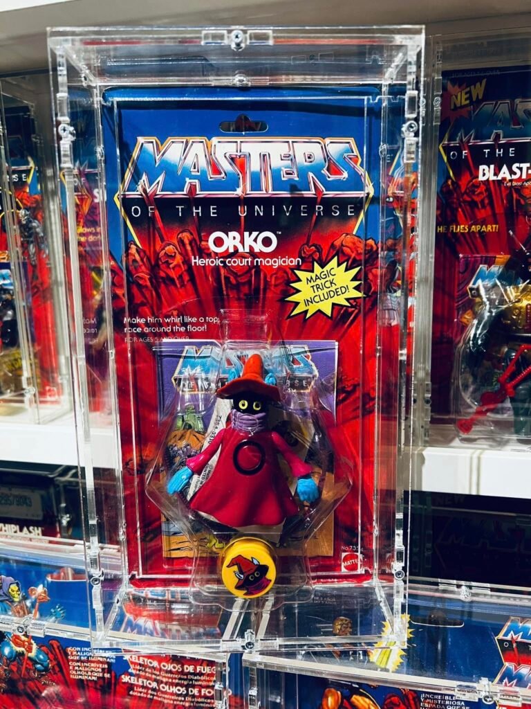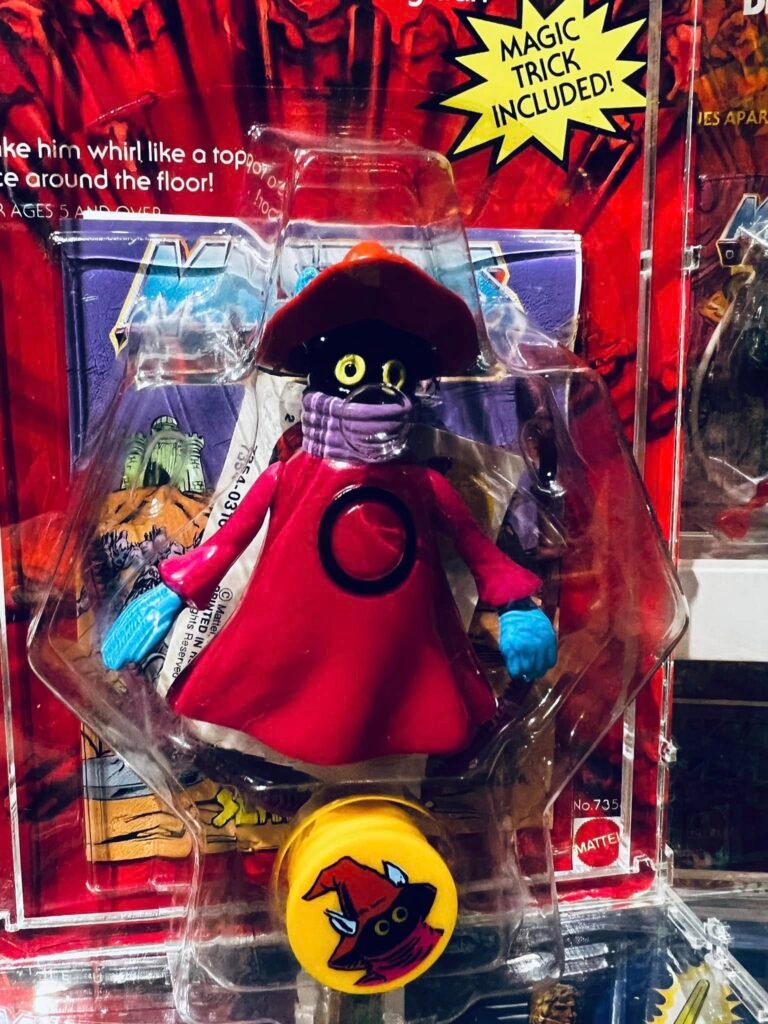 Orko è un mago proveniente dalla dimensione di Trolla e un caro amico di He-Man e degli altri eroi di Eternia. Orko è noto per il suo aspetto peculiare: fluttua nell’aria ed è vestito con una tunica rossa, un cappello a punta e una sciarpa che gli nasconde il viso, lasciando visibili solo gli occhi.
