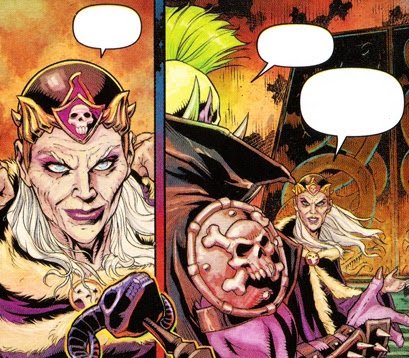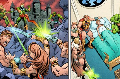 | Sorceress, prima di morire, rivela a Teela la sua identità di madre e clone della ragazza. E le affida il ruolo di guardiana di Grayskull come nuova Sorceress. Anche le identità segrete di Adam e Adora non hanno più ragione d’essere, oramai. Nella Dimensione di Despondos, Re Randor ritrova suo padre Miro, confinato lì anni prima. I due riescono a tornare a Eternia… |