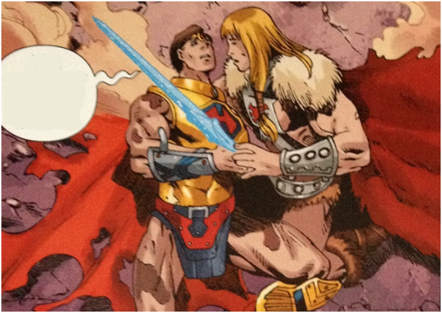| L’ATTACCO E la minaccia arriva solo quattro mesi dopo: Despara e Skeletor zombie attaccano Eternia in nome dell’Impero Horde. He-Man combatte con la vecchia Spada del Potere Elettronica, mentre suo figlio Dare -in un momento di estremo pericolo- prende la reale Spada di He e invocando il Potere di He-Man diventa He-Ro, omaggiando il grande guerriero del passato. |