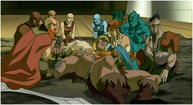 Gorpo evoca lo spirito dei guerrieri del Male del passato (Skeletor, Re Hisss, Hordak e Horde Prime), così Dare -tramite la Spada del Potere- fa apparire anche lo spirito degli eroi del Bene (He-Man, She-Ra, He-Ro e Re Grayskull).
