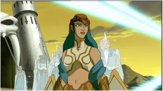 | Durante una delle tante battaglie contro Hisss e gli Uomini Serpente, Sharella viene colpita mortalmente da una freccia di Quick Flick: salvata grazie all’infusione della linfa vegetale di Moss Man, la sua pelle assume una tonalità verde. Rianimata, diventa un messaggero della dea Asklepia e assume il nome di Dea Verde. Durante una delle tante battaglie contro Hisss e gli Snake Men, Sharella viene colpita mortalmente da una freccia Quick Flick: salvata grazie all’infusione della linfa vegetale di Moss Man, la sua pelle assume una tonalità verde. Risorta, diventa messaggera della dea Asklepia e assume il nome di Dea Verde. |