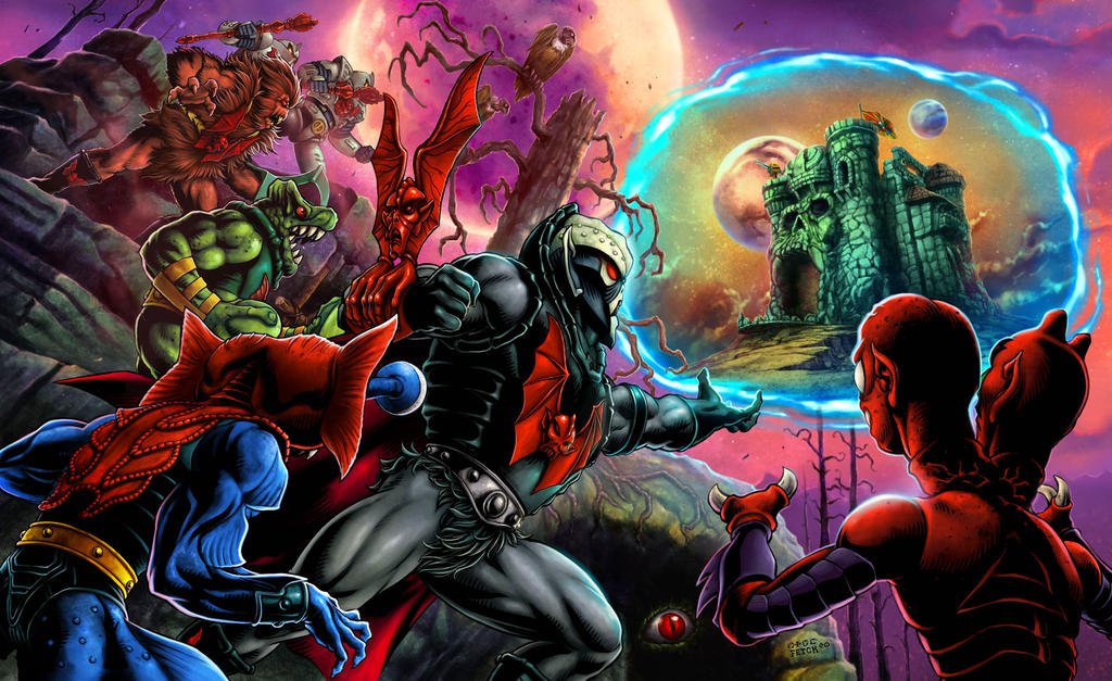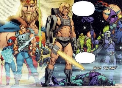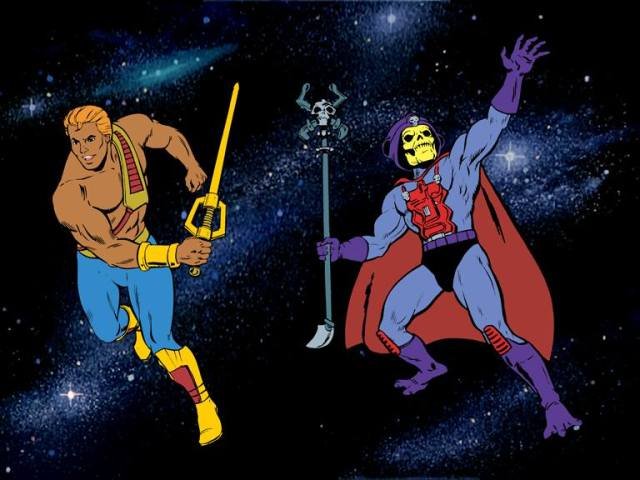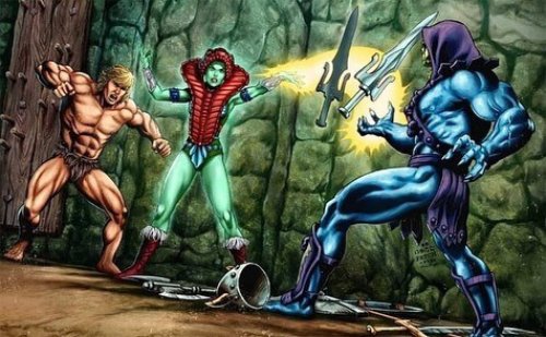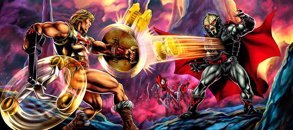 | HE-MAN E SKELETOR: LO SCONTRO Il duello finale tra i due eterni rivali si ha proprio sul ponte che porta al Tempio del Potere di Trolla. He-Man, che si è schierato coi Difensori di Trolla, affronta definitivamente Skeletor, a sua volta alleatosi con la Revenge Squad. Entrambi, grazie all’energia suprema scaturita dal Tempio, ottengono nuovi poteri: Skeletor riesce a ferire He-Man, sfregiandolo sul viso. Quest’ultimo però invoca il Potere di Grayskull che riesce a sconfiggere per sempre il Signore del Male: Demo-Man fugge via dal corpo di Keldor, che muore. Prima di spirare, l’ex principe di Eternia prega suo nipote di regnare con saggezza e di riunire tutti i popoli eterniani senza più discriminazioni per i Gar. |