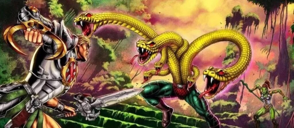 Serpentia e Horokoth liberano le loro creature semidivine Serpos e Hordeus per assoggettare gli altri esseri viventi, ma vengono fermati da Saz e suo figlio Sabe-Or: Serpos viene mutato in pietra.