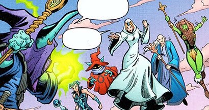 | I CINQUE MAGHI ETERNIANI La magia degli dèi influisce su molti maghi eterniani: ai cinque più potenti tra questi viene affidato un libro magico ciascuno; a Eldor spetta il Libro degli Incantesimi Viventi. Gli antichi costruiscono città e luoghi, fondendo magia e tecnologia, usando viaggi spazio-temporali per spostarsi e stabilirsi poi sul pianeta Primus. Viene fondato dai cinque maghi il Consiglio degli Anziani, e subito costoro devono fronteggiare i primi problemi, tra cui la Bestia di Energia e le maschere del potere create da Mask-Ra. |