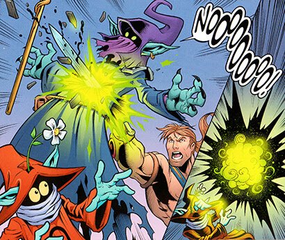 Orko pratica sugli Uomini Serpente l’Incantesimo di Separazione: Re Hisss e tutti i suoi seguaci vengono dissolti per sempre.
