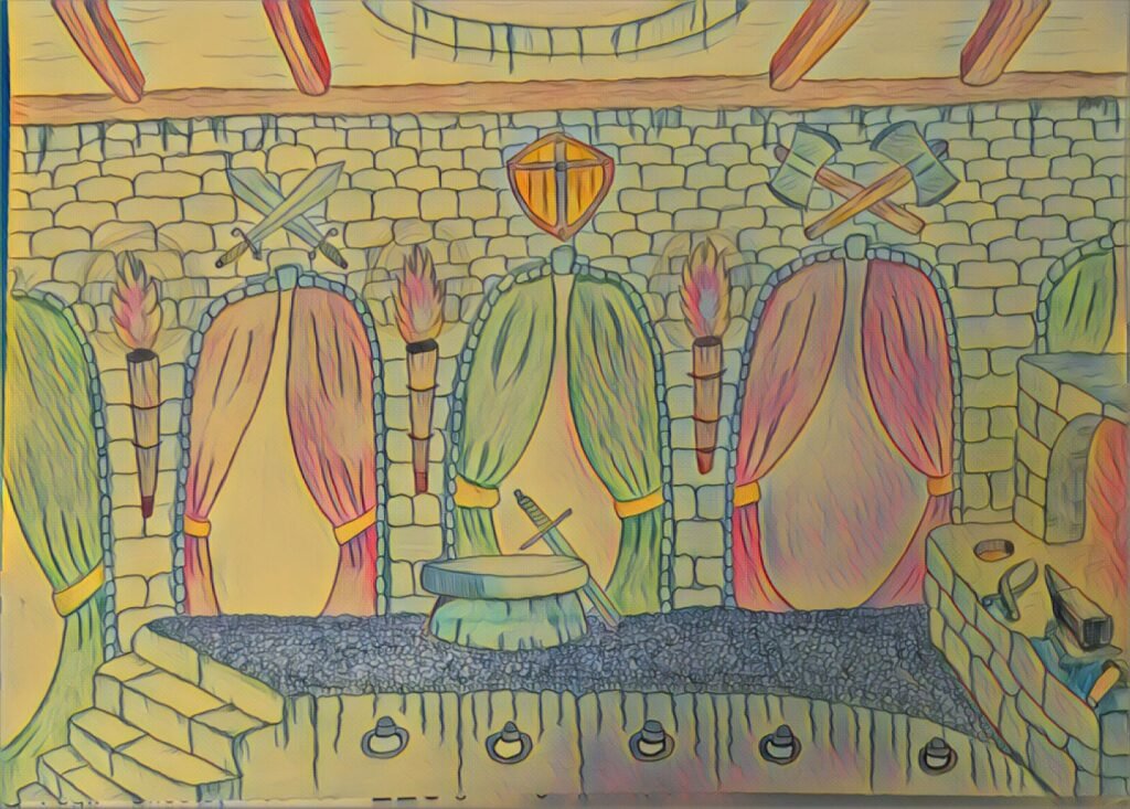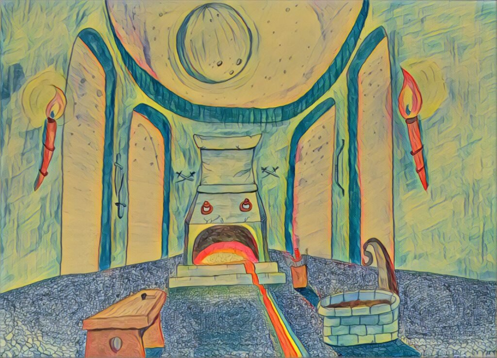 Situata sull’isola della Ruggine, la Forgia è un luogo mitico, dove il metallo e la magia si intrecciavano per creare armi e veicoli senza pari. Una struttura antica come l’isola stessa, era il cuore pulsante della potenza della tribù, una dinastia di fabbri e guerrieri che avevano protetto il segreto della creazione di armi magiche per generazioni. Drudka e Torwi, insieme al loro terzo gemello, Tryglaw, erano destinati a portare avanti l’eredità di questa tradizione.