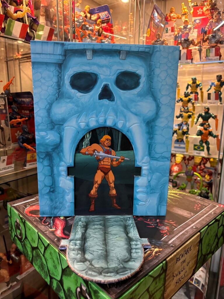 – Emboss/Deboss treatment to replicate Castle Grayskull w/ Draw bridge door with full-colour image behind the door