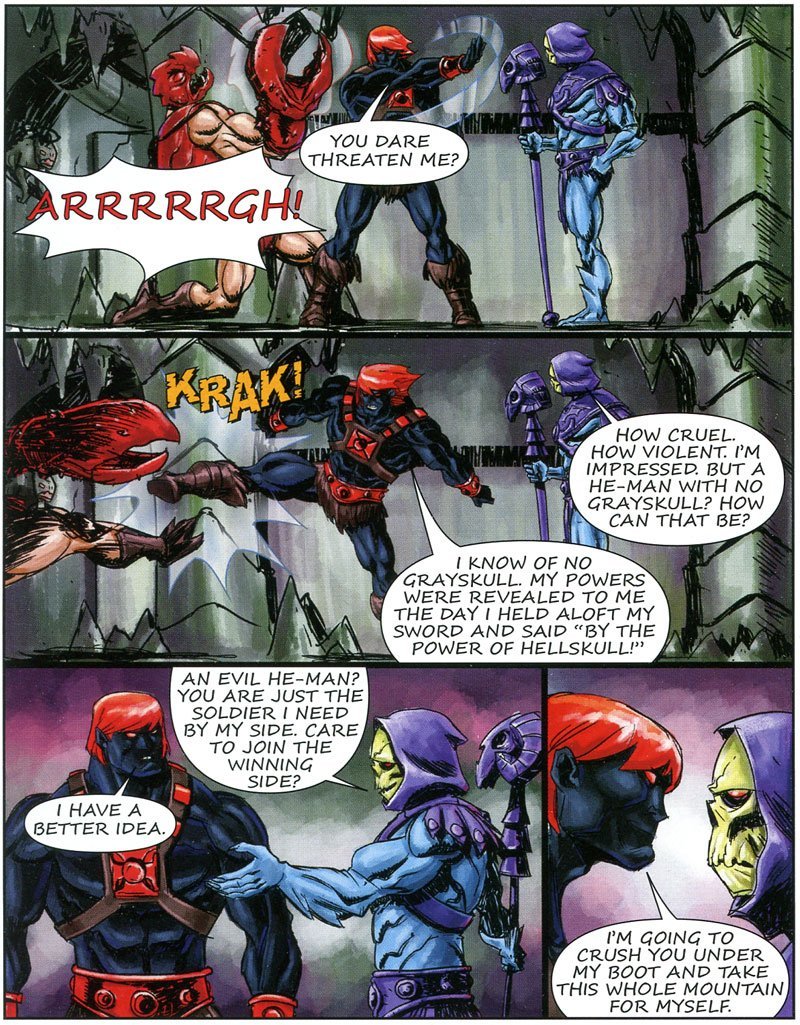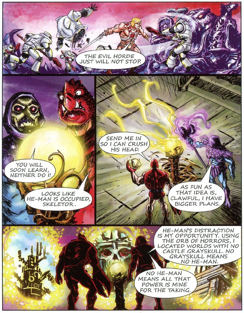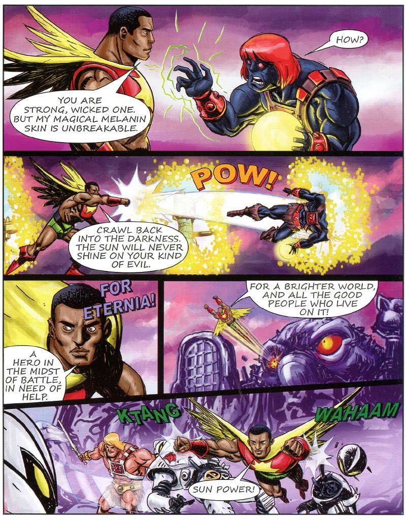 Il fumetto porta nell’Universo Masters i personaggi dei Dominatori del Sole… qui troviamo Sun Man che affronta He-Man Anti-Eternia.