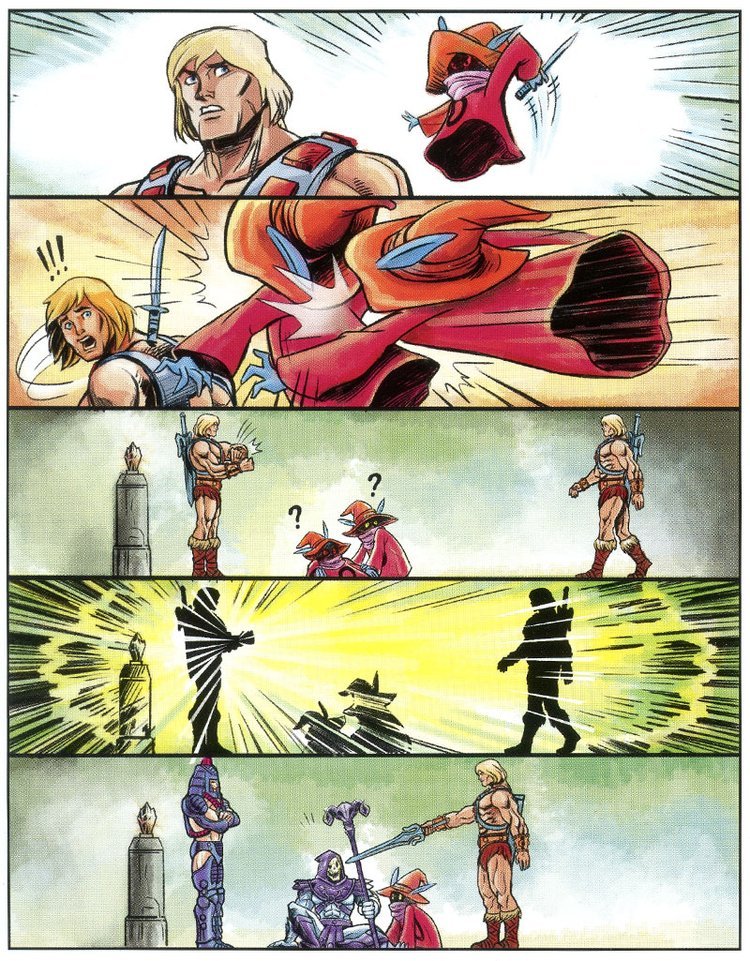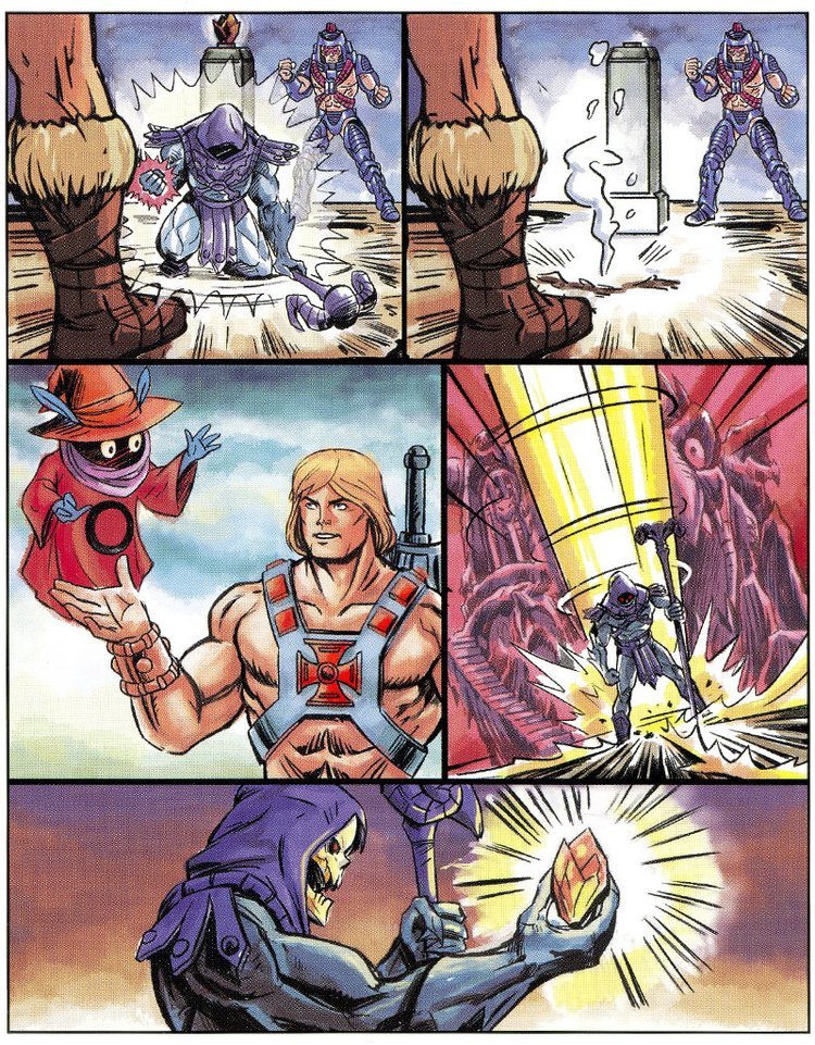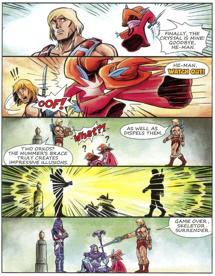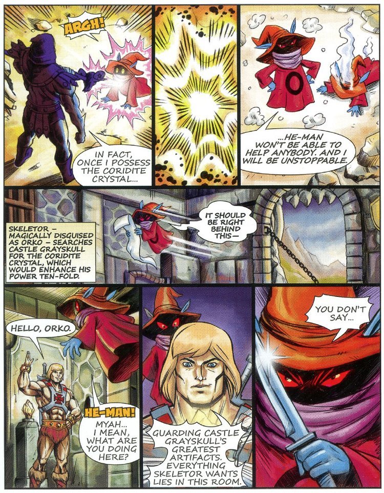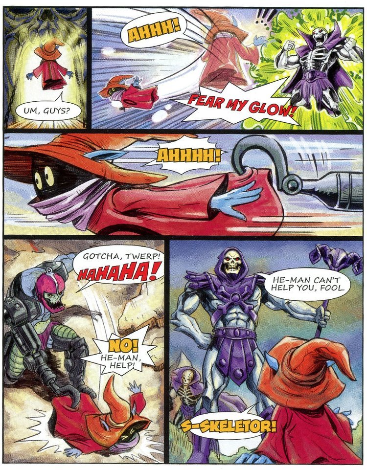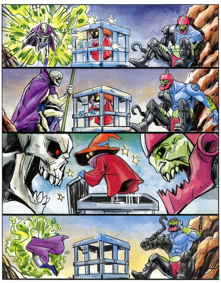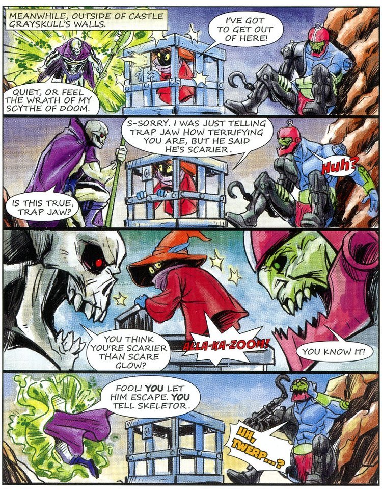 Skeletor assume le sembianze di Orko e raggiunge He-Man nelle sale Reali, mentre sta per accoltellarlo alle spalle (!!) arriva il vero Orko che nel frattempo si era liberato, facendo fare una figura da impiastri a Trap Jaw e Scare Glow.