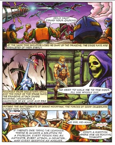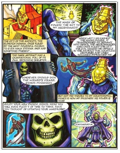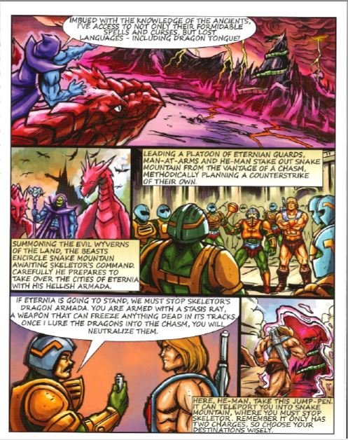 Skeletor apre la narrazione della storia raccontandoci il suo nuovo piano, grazie alla Maschera del Potere non avra’ piu’ limiti ed indossandola potra’ ottenere infinite conoscenze.. come la lingua Draconica per asservire un esercito di Viverne ed assediare il palazzo Reale di Eternia! Mentre Man-at-Arms comanda le difese sulle mura, He-man si teletrasporta nella Montagna del Serpente e fronteggia Skeletor in un duello. Faccia di Teschio e’ potenziato dalla Maschera del Potere e mette in seria difficolta’ il nostro Eroe.. non potendo avere sotto mano la mitica Spada degli Antichi dovra’ usare l’astuzia; con un colpo bandisce ,teletrasportandola nello spazio , la Maschera lasciando Skeletor in balia della vendetta delle Viverne ormai fuori controllo mentale.