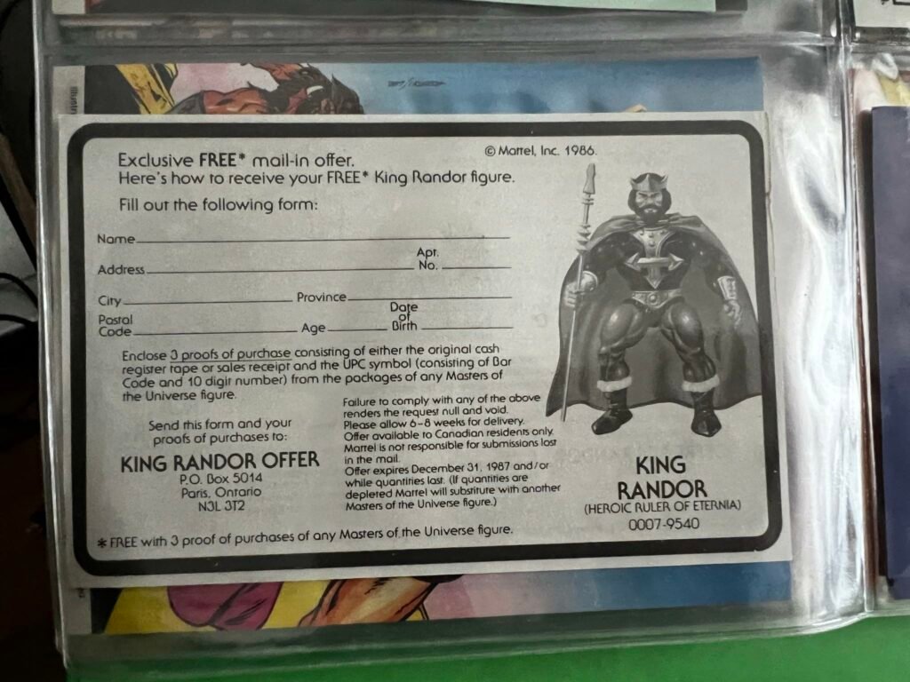 ERA IL LONTANO 1987 QUANDO IN CANADA LA MATTEL DECISE DI FARE UNA PROMOZIONE SPECIALE, BASTAVA COMPERARE 3 PERSONAGGI MASTERS OF THE UNIVERSE PER RICEVERE IL QUARTO IN OMAGGIO CHE ERA APPUNTO KING RANDOR.