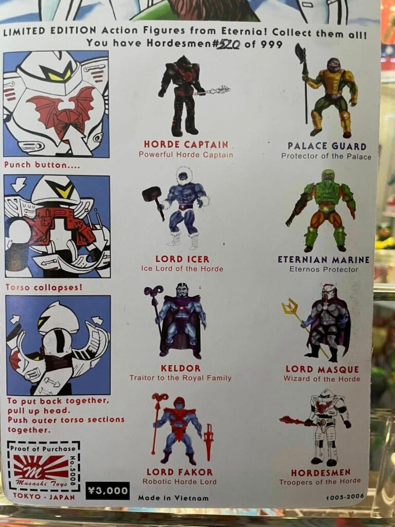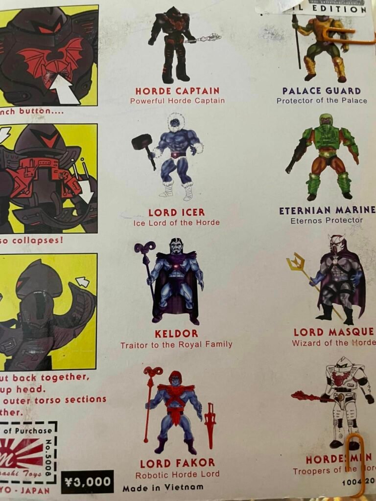 La Musashi toys aveva molti progetti in corso tra cui la realizzazione di molte altre figure come Lord Icer, Palace Guard, Eternian Marine, Lord Masque, Keldor, Lord Fakor..