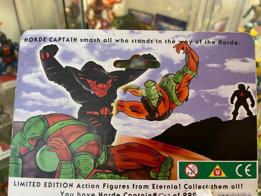 Il personaggio Horde Capitan (foto allegata numero 522 di 999) invece era totalmente nero con vernice rossa e arma di colore bianco