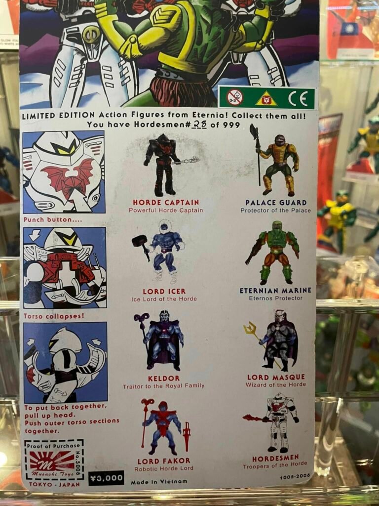 La società era appunto la Musashi Toys, un’azienda giapponese che come rampa di lancio volle utilizzare due horde trooper modificandole i colori e lanciando la produzione in Vietnam.