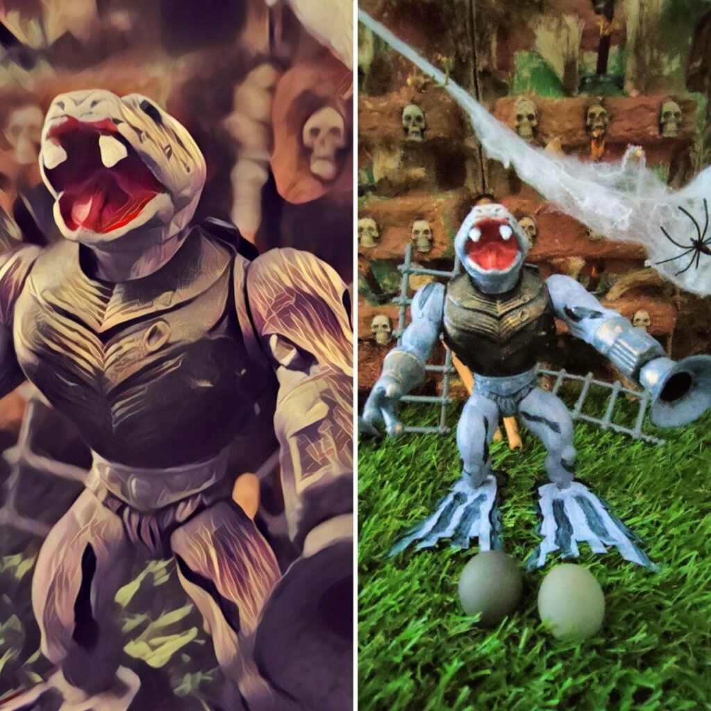 Phasmo è un uomo pesce dalle origini misteriose, un guerriero che si muove tra le acque profonde di Heldorn, un mare tanto vasto quanto insidioso. La sua pelle azzurra, brillante come il cielo al tramonto, gli permette di mimetizzarsi perfettamente con l’acqua scura dei mari tumultuosi. Nessun predatore o preda riusce a vederlo arrivare, se non quando ormai è troppo tardi.
