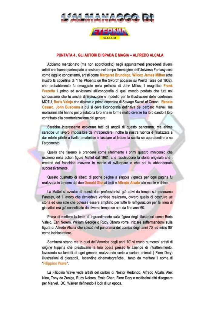 Buonasera a tutti, ben tornati e Buon inizio di Settembre, settimo mese per il calendario romano, undicesimo per il nostro gregoriano. Iniziamo questa nuova stagione con il quarto appuntamento del nostro Almanacco dedicato al Maestro Alcala. Con questo appuntamento iniziamo ad addentrarci nelle relzioni tra i grandi artisti ed il franchise Masters of the Universe ripercorrendo le loro carriere e contributi al mondo dello Sword and Sorcery di cui il Franchise è figlio.Spero vi piaccia e come sempre attendiamo vostri like. Ciao.