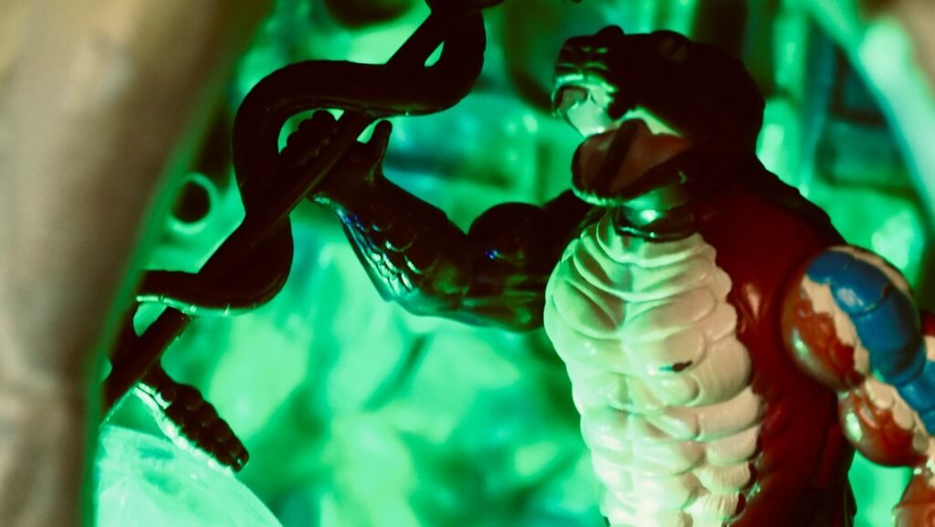 Rattlor è un personaggio della serie **Masters of the Universe**, in precedenza era agli eserciti di **Hordak** e successivamente si unì alla fazione dei **Snake Men**. È un serpente antropomorfo con la capacità di allungare il collo per attaccare, e il suo nome deriva dal suono di un sonaglio, simile a quello di un serpente a sonagli. Nell’universo MOTU, Rattlor è conosciuto per la sua fedeltà a King Hiss, il leader dei Snake Men, ed è spesso rappresentato come una figura feroce e astuta.