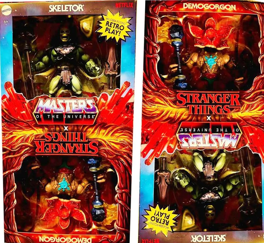 Quello che possiamo notare è che i personaggi vengono inseriti in un box , uno all’opposta dell’altro e che Skeletor viene fornito del suo havoc e della spada mentre l’arma del Demogorgone sembra composta da un’asta e due sfere alle sue estremità.
