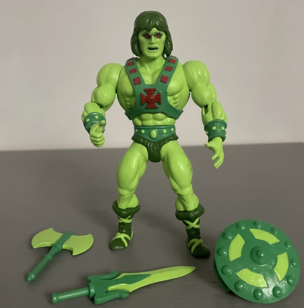 SLIME PIT HE-MAN ….. personaggio membro della EVIL HORDE creato da HORDAK etc etc ….. io ho la versione Classic e lo volevo anche per gli Origins …… avrei voluto e dovuto stamparlo tutto per intero in plastica verde translucida ma mi sono limitato a ripittare un He-Man