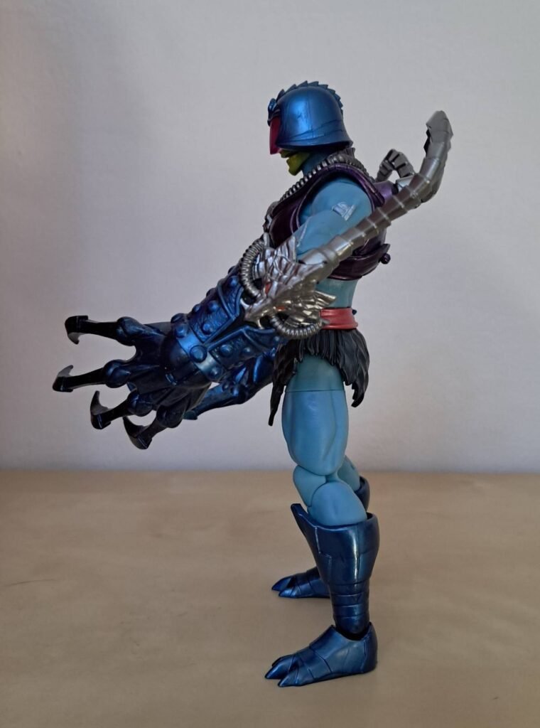 Bene, leggendo quanto sopra e ricordando le critiche che feci quando uscirono le immagini promozionali, verrebbe da pensare a una netta stroncatura di questa figure. E invece no, perchè, nonostante le varie perplessità, vedendolo dal vivo e tenendolo in mano, questo Skeletor fa cmq una bella figura. È un pupazzo solido, seppur ingombrante date le dimensioni degli artigli e imponente. La qualità dei dettagli è quella delle ultime prodizioni e le articolazioni sono tutte buone. Se superate l’impatto iniziale e ne accettate questa nuova concezione cybernetica, allora riuscirete ad apprezzarne anche i lati positivi.