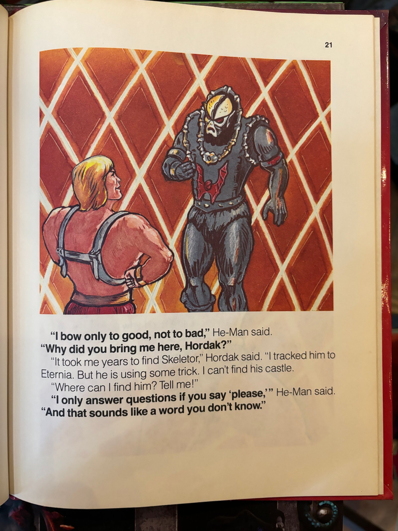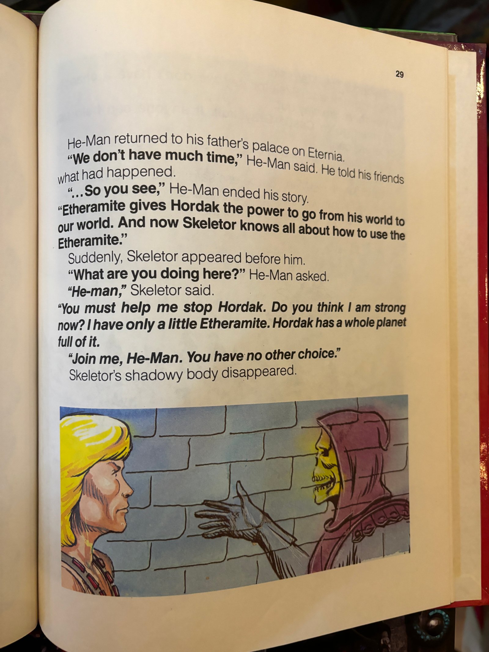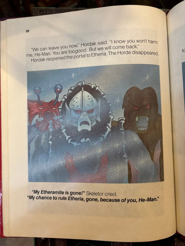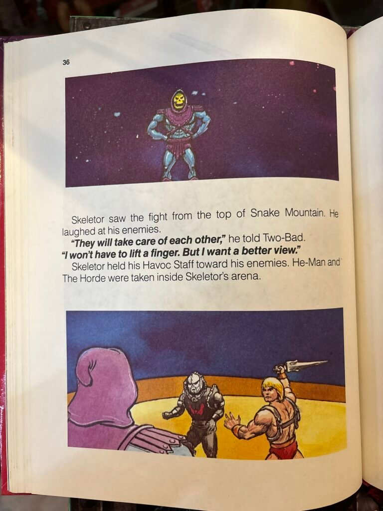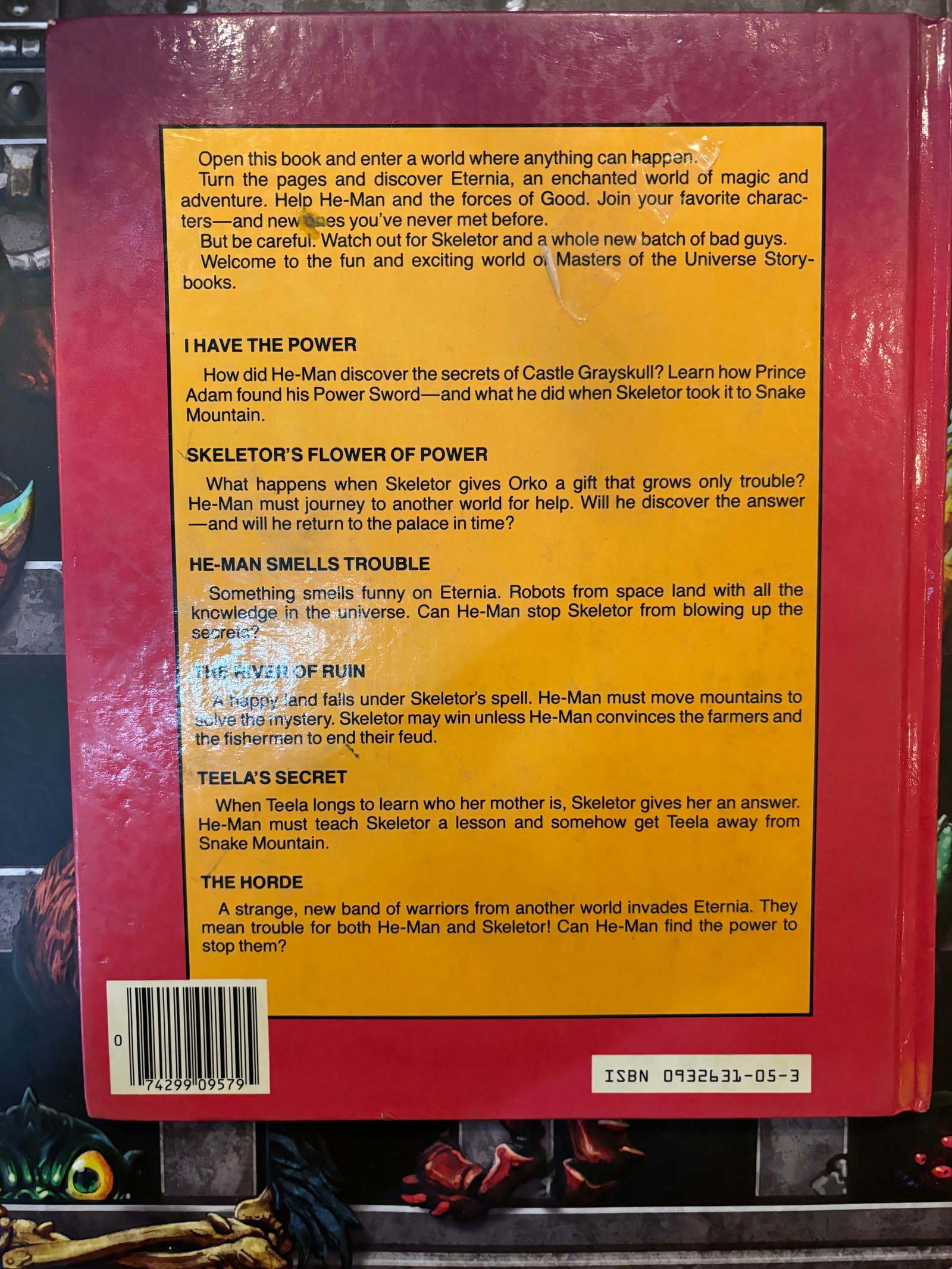 APRI QUESTO LIBRO E ENTRA IN UN MONDO DOVE TUTTO PUO’ ACCADERE. GIRA LE PAGINE E SCOPRI ETERNIA, UN MONDO INCANTATO DI MAGIA E AVVENTURA. AIUTA HE-MAN E LE FORZE DEL BENE. UNISCITI AI TUOI PERSONAGGI PREFERITI. MA STAI ATTENTO. FAI ATTENZIONE A SKELETOR E A UN GRUPPO DI NUOVI CATTIVI. BENVENUTI NEL MONDO DIVERTENTE E EMOZIONANTE MASTERS OF THE UNIVERSE STORY-BOOKS