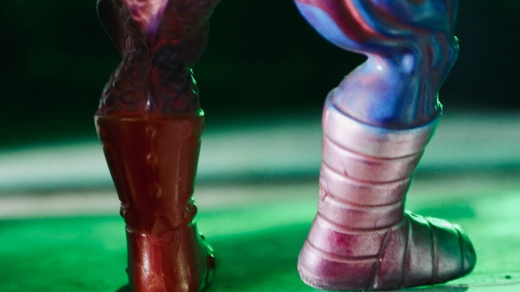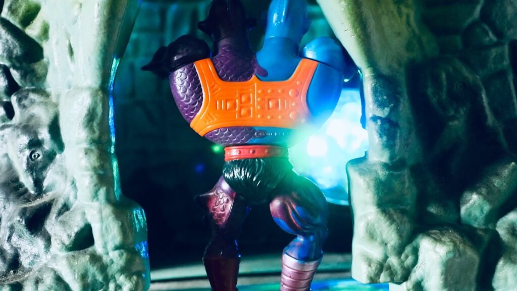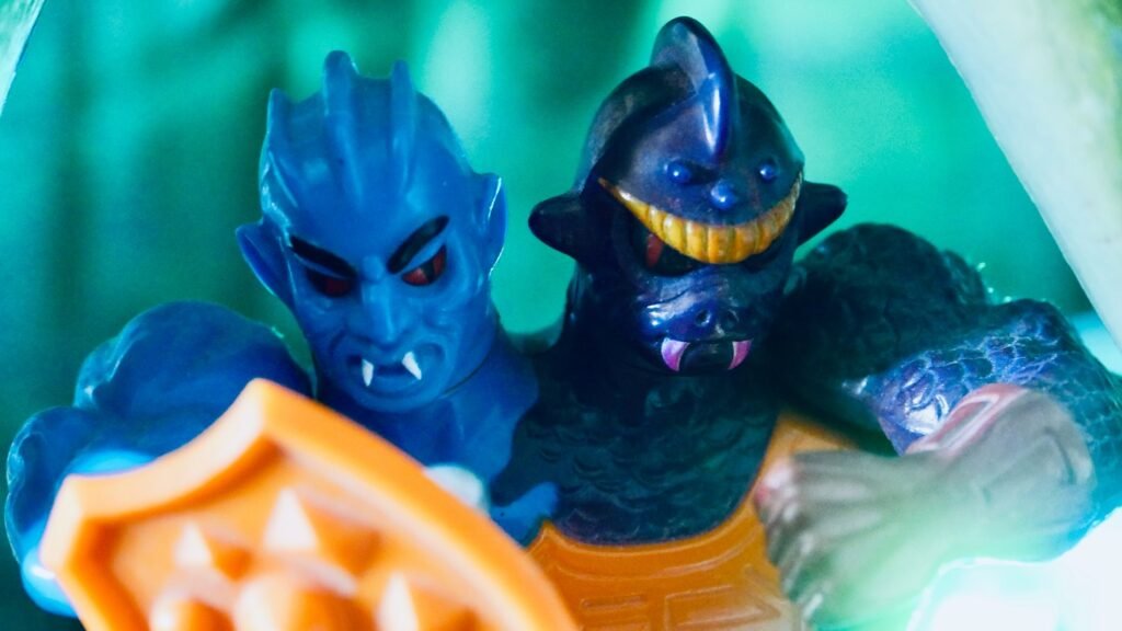 ***Two Bad** is a character from the **Masters of the Universe** line, famous for having two heads, each with a different and contrasting personality. He is a warrior with a powerful and asymmetrical body, divided into two halves of different colors: one half blue and the other purple. The heads represent two separate individuals, one usually shrewd and the other more aggressive, but they constantly quarrel with each other. Two Bad is often seen as a henchman of Skeletor and his main feature is the continuous internal rivalry, which makes him an unpredictable opponent.