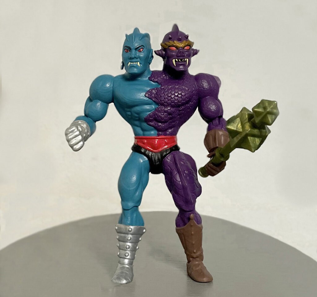 TWO BAD mi sono inspirato ad un disegno / progetto di Joey Cruel trovato in rete , ho cercato di realizzarli il più simile possibile al suo disegno , ho dovuto progettare e stampare diversi pezzi in 3D ( braccia , gambe , torso doppio , stivali etc etc ) ci ho messo 2 mesi per realizzarli , anche perché ho avuto difficoltà nel montaggio dei pezzi una volta stampati , a causa della resina troppo rigida ….per non parlare della difficoltà nel realizzare le scaglie sulle parti viola …….
