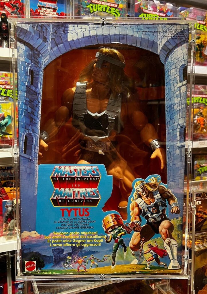 Il personaggio è stato sviluppato per la linea di giocattoli “The Powers of Grayskull” di Mattel, uno spin-off del franchise Masters of the Universe in declino che avrebbe esplorato gli eroi e i cattivi di Eternia preistorica. Tuttavia, i piani per la nuova linea di giocattoli non sono stati confermati e Tytus è stato reso disponibile in Europa nel 1987, insieme a Megator, come una delle ultime action figure sotto il marchio Masters of the Universe. Di conseguenza è uno dei personaggi più rari ed oscuri del franchise.
