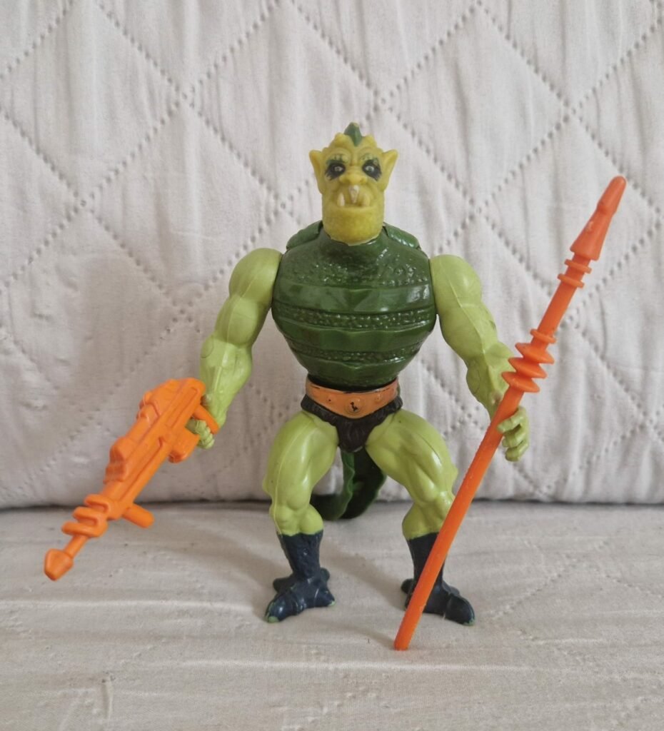 Venezuela qui in un altra versione conosciuta come Inverter Color caratterizzata dal colore del contorno occhi nero e dalle soppraciglie verdi. Pupille degli occhi verdi. Colore degli arti verde chiaro. Personaggio marcato Mattel inc.1983. Lancia marcata Mattel inc. 1981 e fucile in gomma morbida marcato Hong kong. Vi piace? ![]()