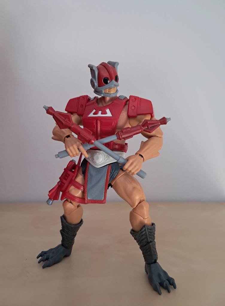 Molto piú interessante il bastone, ereditato dallo Zodak con la K dei MOTUC. Il design riprende quello della pistola e personalmente ho preferito separarlo in modo da dargli una posa in stile escrima (nello specifico ripresa sa Mr. Big di Art of Fighting). È possibile inoltre collocarli negli alloggiamenti sulla schiena, a costo di sacrificare le spalline.